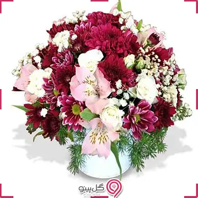 باکس گل شامل گل های میخک و داوودی و آلستر می باشد.