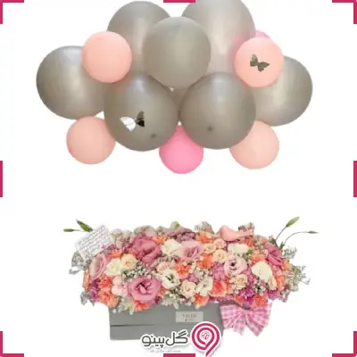 *در صورت امکان میتوان رنگ باکس، بادکنک و برخی از گلها را تغییر داد، که برای ایجاد تغییرات با تیم پشتیبانی در تماس باشید.