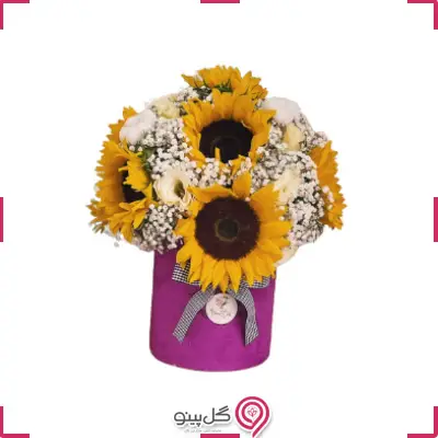 | تعداد گل | شامل حداقل 1 دسته گل ژیپسوفیلا، 2 گل پنبه، 5 شاخه گل آفتابگردان و 4 شاخه لیسیانتوس |