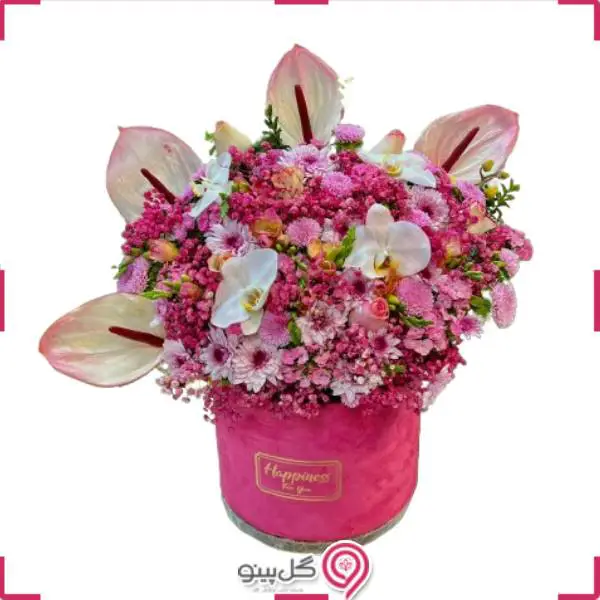| تعداد گل | شامل حداقل 4 شاخه آنتوریوم، 3 گل ارکیده، 1 دسته ژیپسوفیلا و 3 دسته داوودی یا میخک یا لیسیانتوس |