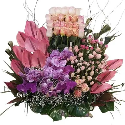 | تعداد گل | شامل حداقل 20 شاخه گل رز هلندی، 2 دسته رز مینیاتوری، 18 گل ارکیده، 10 شاخه آنتوریوم |
