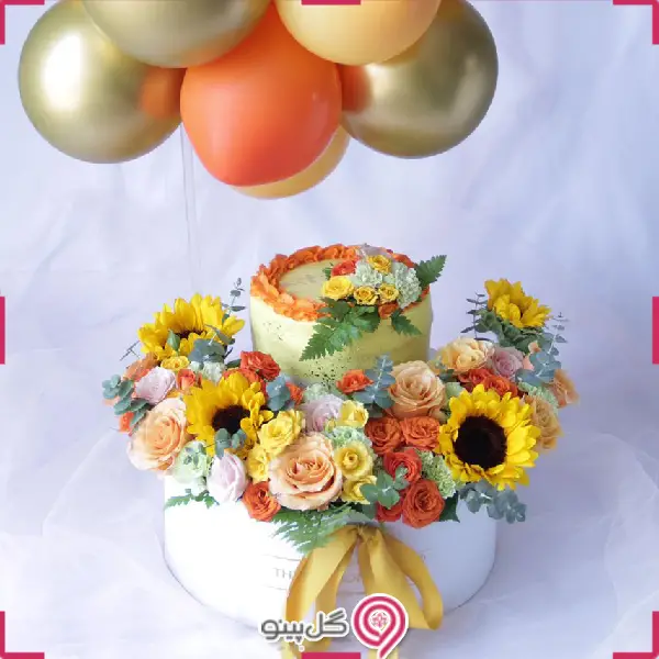 *باکس گل نیلا شامل حداقل 4 شاخه آفتابگردان، 1 دسته رز مینیاتوری و 8 شاخه رز به همراه کیک تولد 1 کیلویی خانگی می باشد.