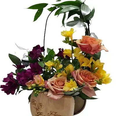 *باکس گل متشکل از رز، فریزیا، آلسترومریا