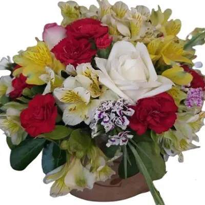 *باکس گل متشکل از گل آلسترومریا، رز، قرنفل، میخک