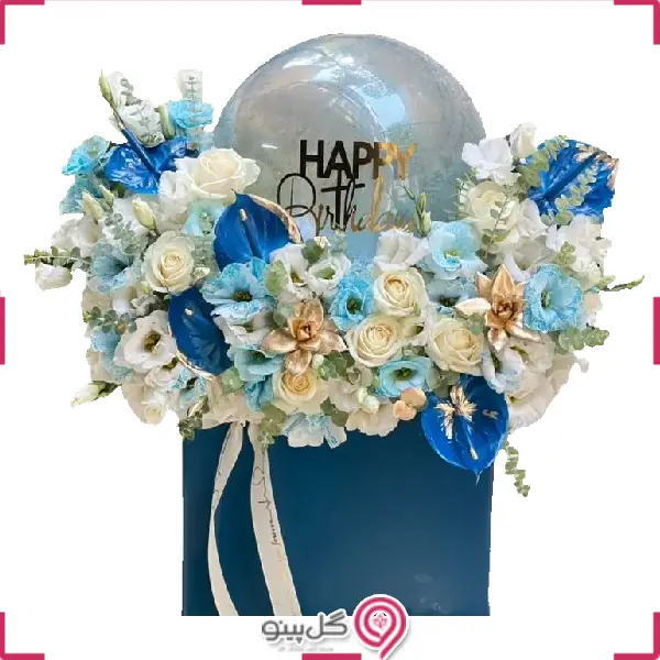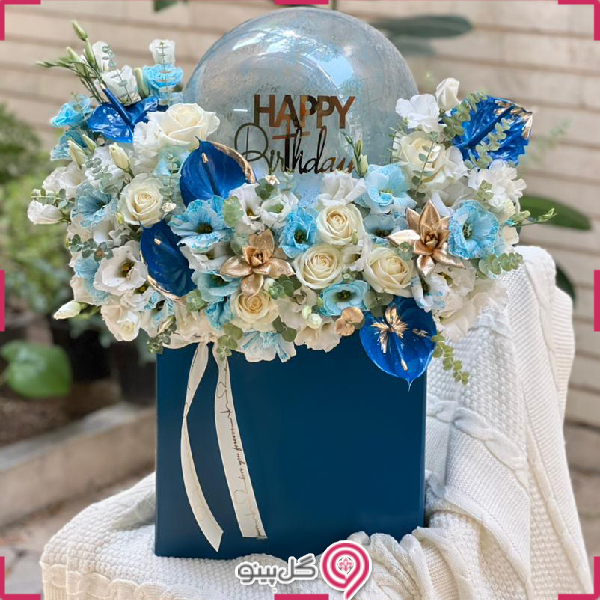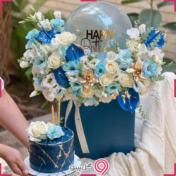 *باکس گل پرتو شامل حداقل 6 شاخه رز، 5 شاخه آنتریوم، 34 شاخه لیسیانتوس به همراه کیک تولد حدود 1 کیلویی خانگی می باشد.