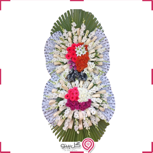 تاج گل ترحیم دوطبقه شامل حداقل 20 شاخه شب بو، 16 شاخه ژربرا، 6 شاخه گلالیل، 6 شاخه آنتریوم، 10 شاخه آلسترومریا، 8 شاخه داودی، 6 شاخه لیلیوم است. ثبت سفارش برای شهرهای متفاوت با هماهنگی تیم پشتیبانی گل پینو امکان پذیر است.