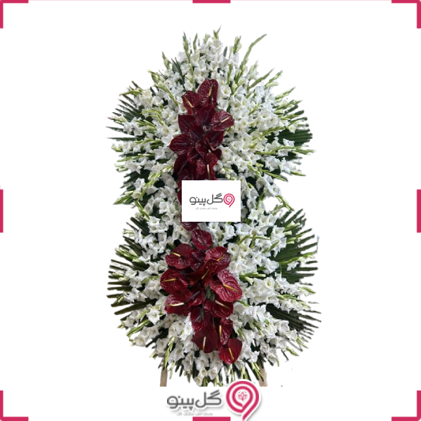 تاج گل دو طبقه ای مینو با گل های آنتریوم و گلایل یکی از انواع تاج گل تبریک، تاج گل افتتاحیه قابل سفارش در سایت گل پینو است. با تغییر کامل رنگ بندی گل ها و استفاده از رنگ گل های مناسب مراسم ترحیم استفاده از این تاج گل به منظور تاج گل ترحیم یا تاج گل تسلیت امکان پذیر می شود. در صورت نیاز به تغییر این موارد و ارسال این تاج گل برای مراسم تبریک با تیم پشتیبانی گل پینو در ارتباط باشید.
