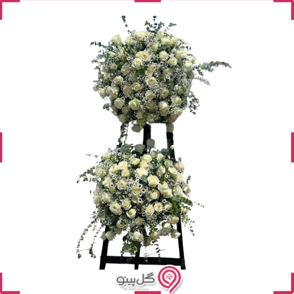 تاج گل رز دو طبقه ماهون با گل های رز و ژیپسوفیلا یکی از انواع تاج گل ترحیم ، تاج گل تسلیت قابل سفارش در سایت گل پینو است. با تغییر کامل رنگ بندی گل ها و استفاده از رنگ گل های شاد مانند قرمز، صورتی و … استفاده از این تاج گل به منظور تاج گل افتتاحیه یا تاج گل تبریک امکان پذیر می شود. در صورت نیاز به تغییر این موارد و ارسال این تاج گل برای مراسم تبریک با تیم پشتیبانی گل پینو در ارتباط باشید.