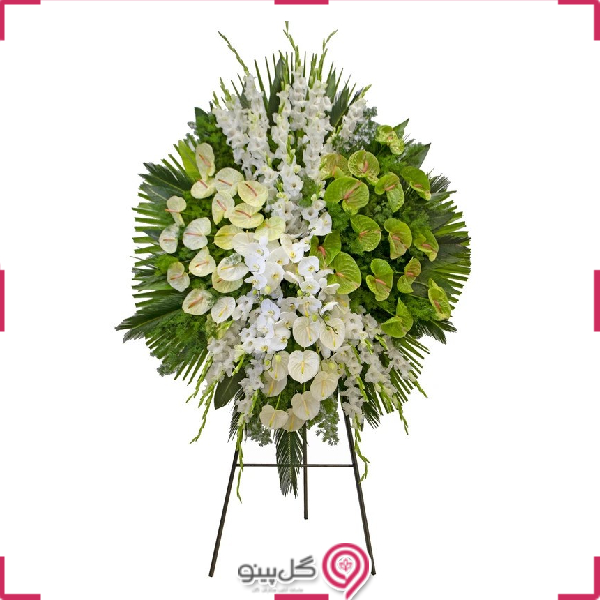 تاج گل یک طبقه فامکه با گل های گلایل و آنتریوم یکی از انواع تاج گل ترحیم ، تاج گل تسلیت قابل سفارش در سایت گل پینو است. با تغییر کامل رنگ بندی گل ها و استفاده از رنگ گل های شاد مانند قرمز، صورتی و … استفاده از این تاج گل به منظور تاج گل افتتاحیه یا تاج گل تبریک امکان پذیر می شود. در صورت نیاز به تغییر این موارد و ارسال این تاج گل برای مراسم تبریک با تیم پشتیبانی گل پینو در ارتباط باشید.