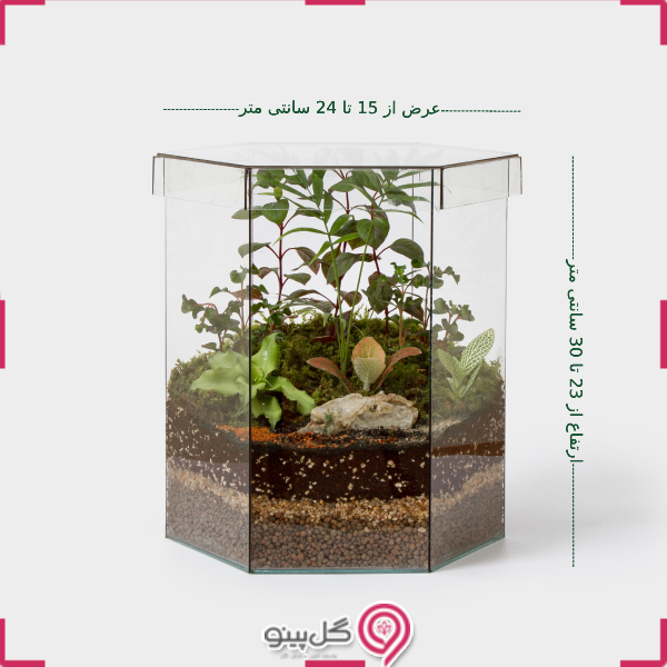 | ابعاد تراریوم | ارتفاع از 23 تا 30 سانتی متر عرض از 15 تا 24 سانتی متر |