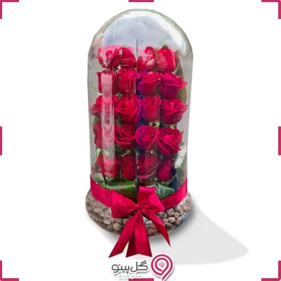 * تراریوم 20 عدد گل رز قرمز با کیفیت هدیه‌ای بی‌نظیر و رمانتیک  که در یک قاب شفاف زیبا قرار گرفته اند.