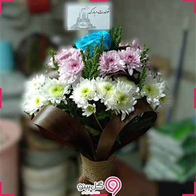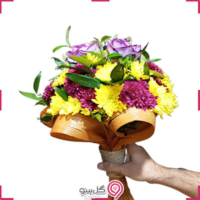 شامل گل های داوودی زرد و صورتی و گل رز