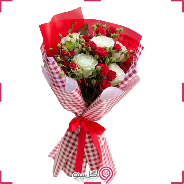 *دسته گل پاکان شامل حداقل 5 شاخه رز، 1 دسته رز مینیاتوری می باشد.