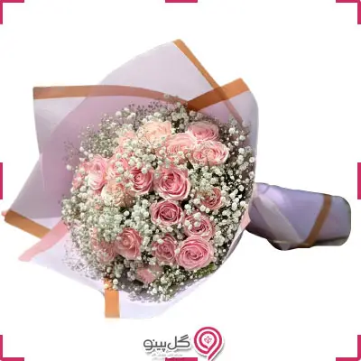 تعداد گل شامل حداقل 20 شاخه گل رز هلندی و 1 دسته گل ژیپسوفیلا