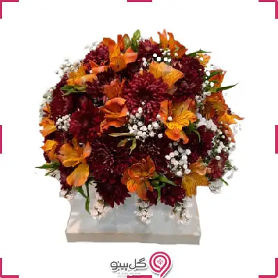 تعداد گل شامل حداقل 1 دسته آلسترومریا، 4 دسته گل داودی و 1 دسته گل ژیپسوفیلا