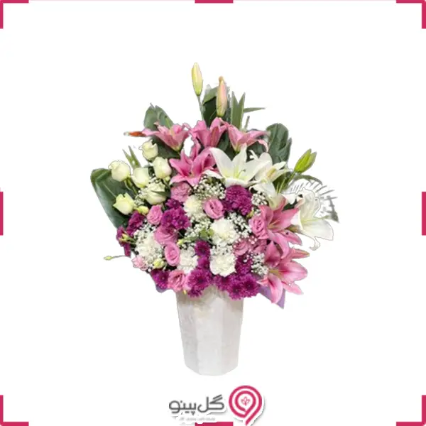 * به دلیل طبیعی بودن گل ها و تفاوت شکل ظاهری هر کدام، ممکن است گلدان نهایی کاملا مطابق تصویر نباشد و اندکی تفاوت داشته باشد.